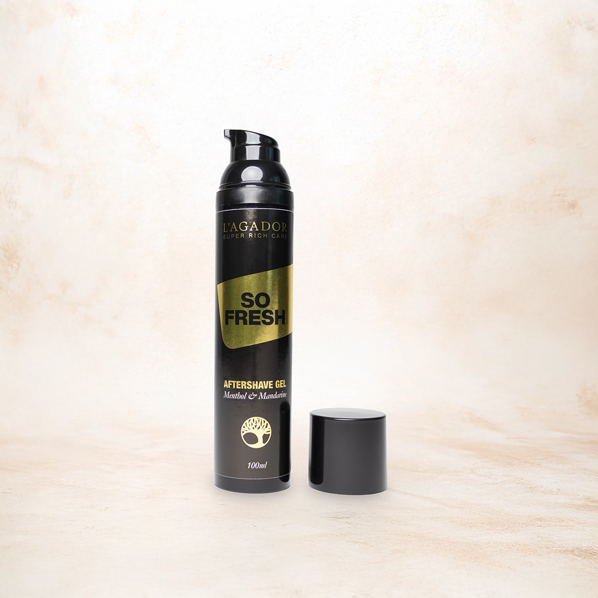 Unser So Fresh Aftershave Gel, ist eine erfrischende Kombination aus Menthol und Mandarine, veredelt durch eine sanfte Sandelholznote, sorgt es für ein vitalisierendes und maskulines Pflegeerlebnis. Die leichte Gel-Textur zieht schnell ein, pflegt die Haut und hinterlässt ein angenehm gepflegtes Gefühl.